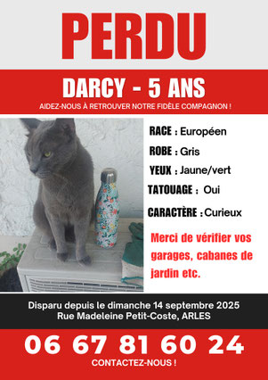 Si vous retrouvez votre chat entre temps, pensez à nous le signaler.