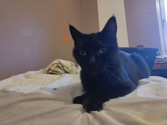 Il est toujours aussi câlin et affectueux, c’est un gentil papy chat qui s’adapte petit à petit à sa nouvelle vie de famille.