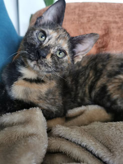 Elle s'est merveilleusement bien approprié son nouvel environnement. Elle est très câline, joueuse, mange bien et dort bien.