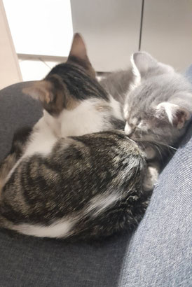 C'est une chipie, fini la petite minette qui se cachait sous le canapé. Elle est pleine de vie, très câline et avec Loki ils ont leur quart d'heure de folie. Ils me donnent beaucoup d'amour.