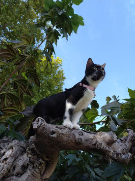 Il a bien grandi et reste toujours très câlin. Il sort dans le jardin et joue avec la minette de nos voisins. Il ne s éloigne pas, pour l'instant, il est prudent.