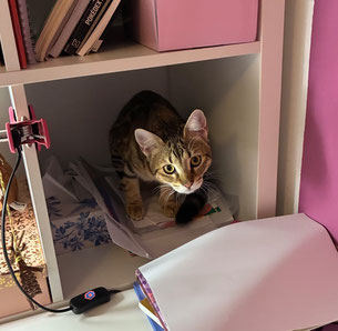 C'est une petite merveille. Elle s'est très bien habituée à la maison, elle grimpe partout, se cache dans des endroits insolites et nous fait beaucoup rire.